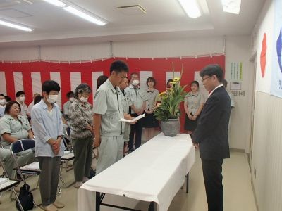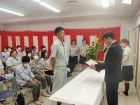 黒澤専務の開会挨拶後に黒澤社長の式辞、優良従業員表彰と業務改善提案賞表彰を行いました。