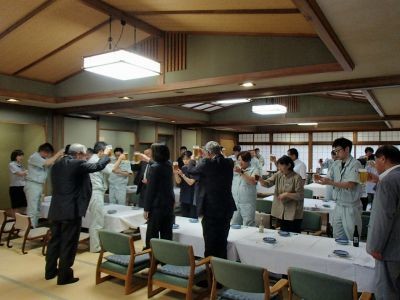 黒澤相談役の乾杯で生ビール大会が始まり、社員の親睦を深める事ができました。