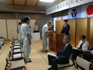 黒澤専務の開会挨拶後に黒澤社長の式辞、優良従業員表彰と業務改善提案賞表彰を行いました。